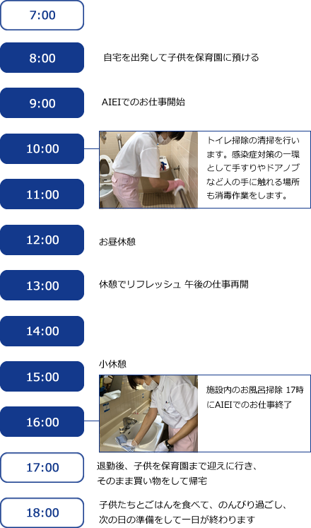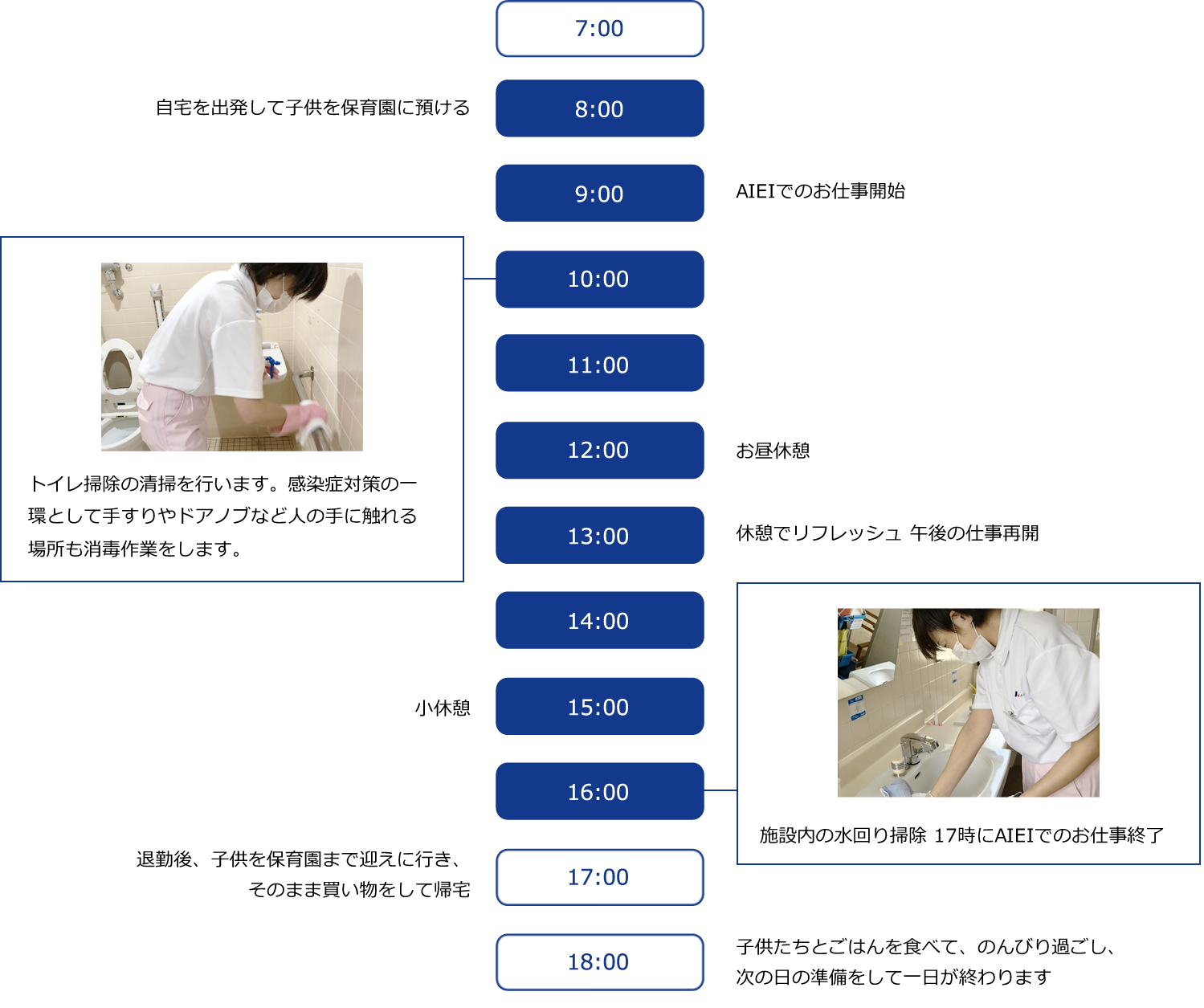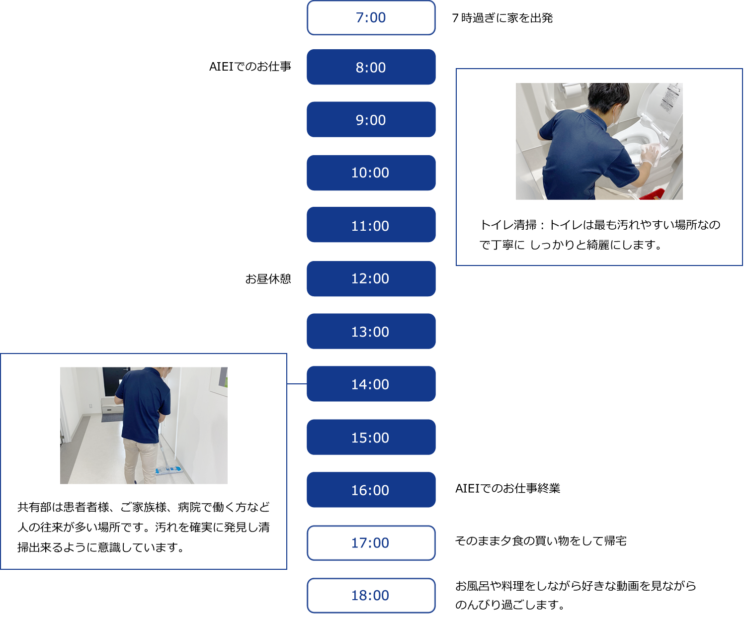 清掃の仕事は黙々と業務をする場面が多いのですが、施設スタッフの方と 笑顔での挨拶や利用者様からの感謝の言葉を頂くと嬉しい気持ちになりま す。