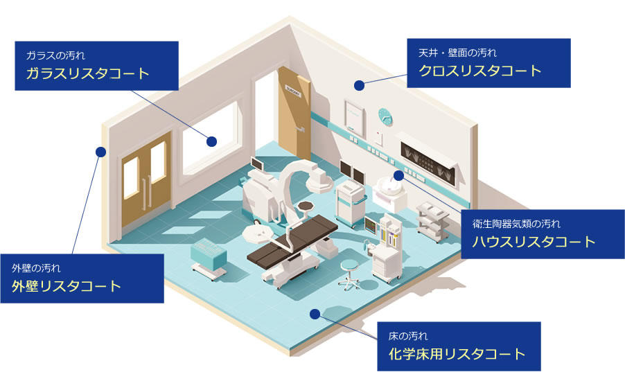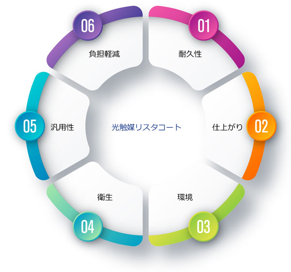 光触媒を配合した、革新的コーティングシステム表面の汚れ・細菌・カビ・ウイルス等を